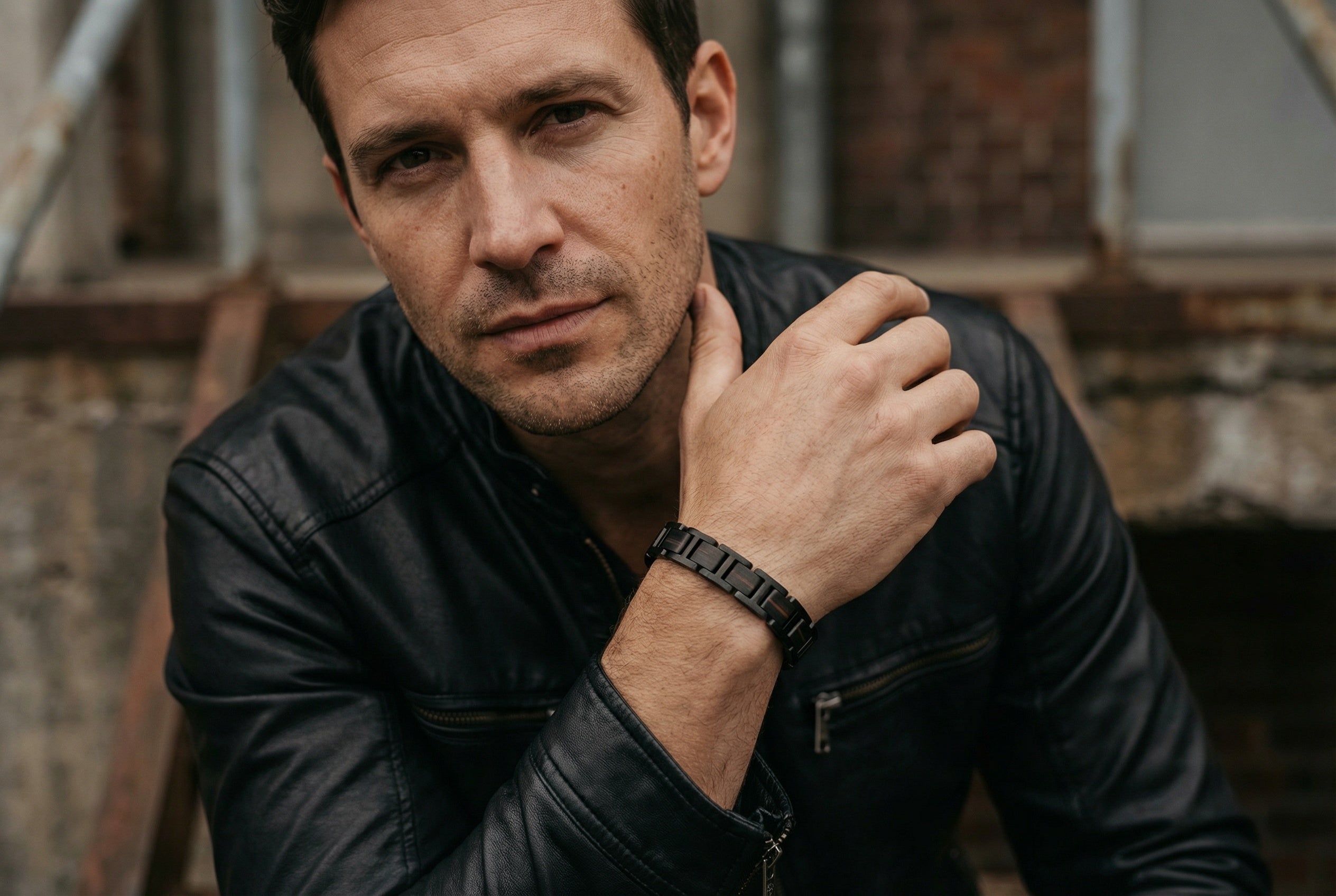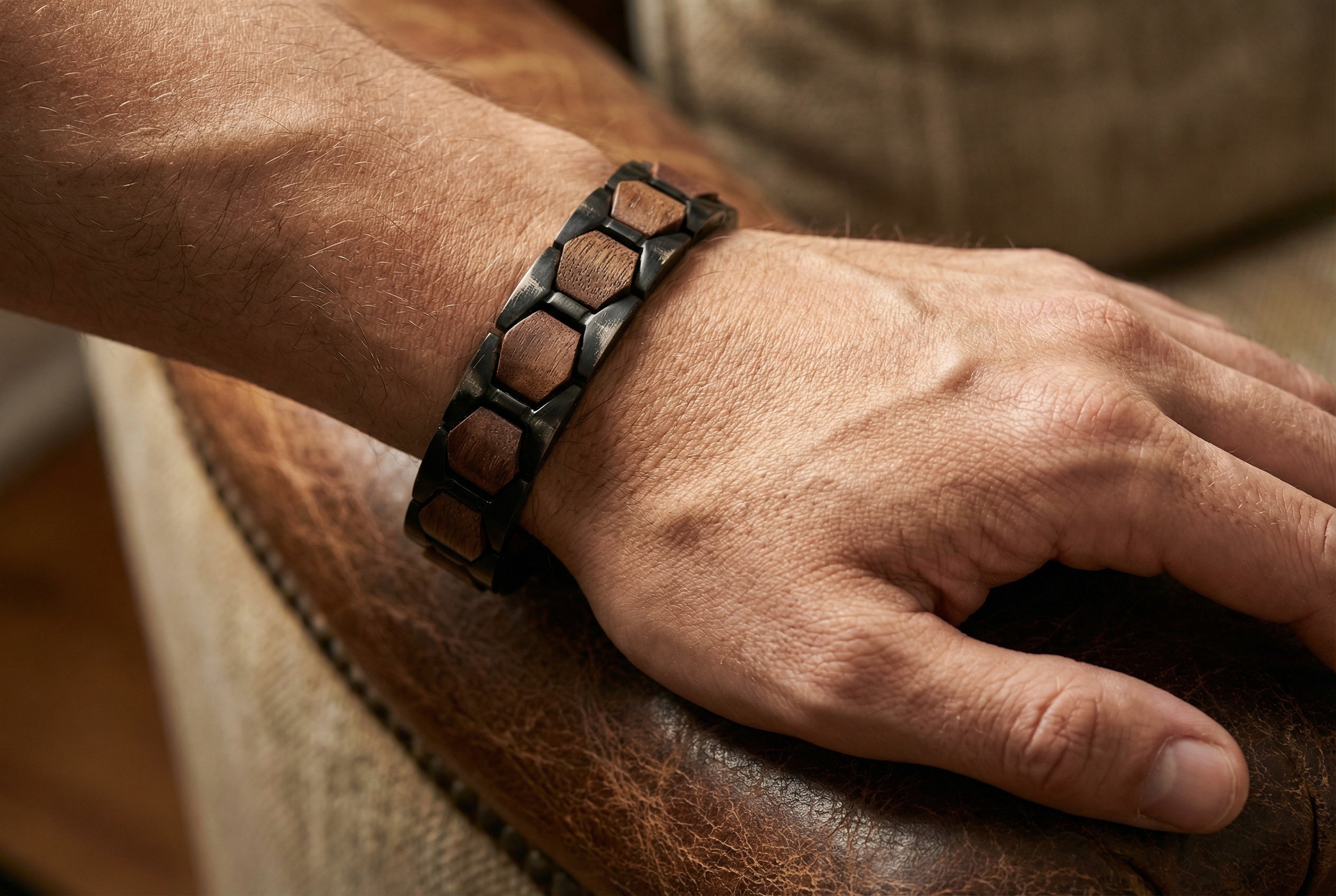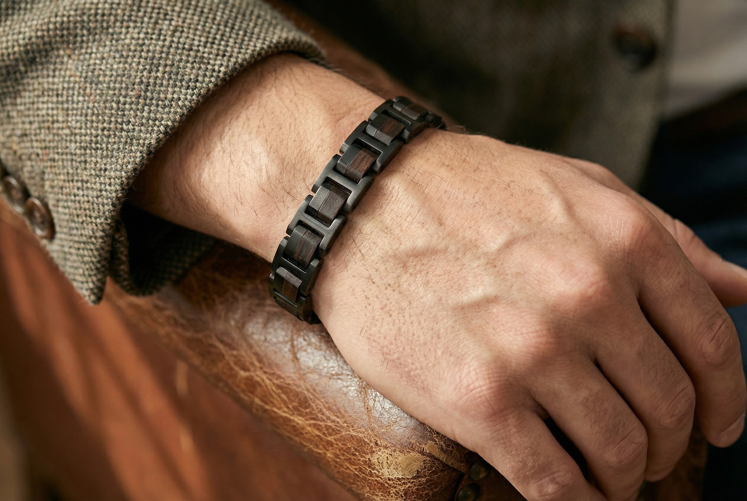 Męska bransoletka z drewna i stali