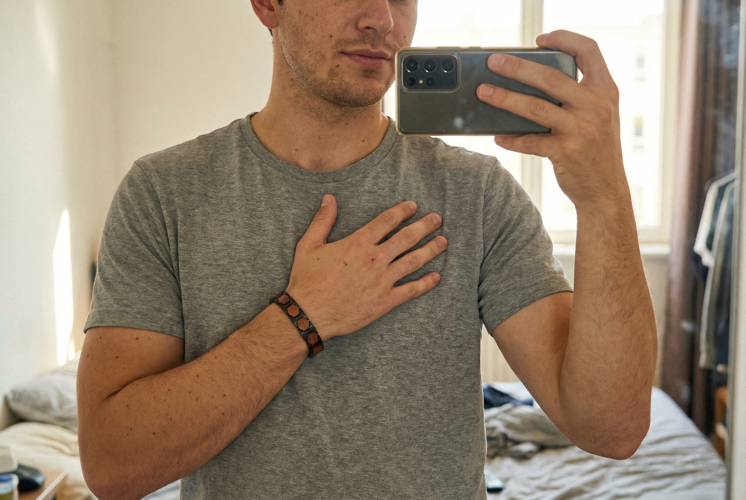 Jestem bardzo zadowolony z bransoletki.Noszę ją już około miesiąca — dobrze dopasowuje się do nadgarstka, łatwo ją wyregulować i jest bardzo wygodna w codziennym noszeniu.Materiały są przyjemne, a sama bransoletka wygląda solidnie i stylowo, pasuje do wielu stylizacji.Nic nie uciska, nie przeszkadza, nawet przy dłuższym noszeniu.Świetny produkt — na pewno zamówię kolejną.