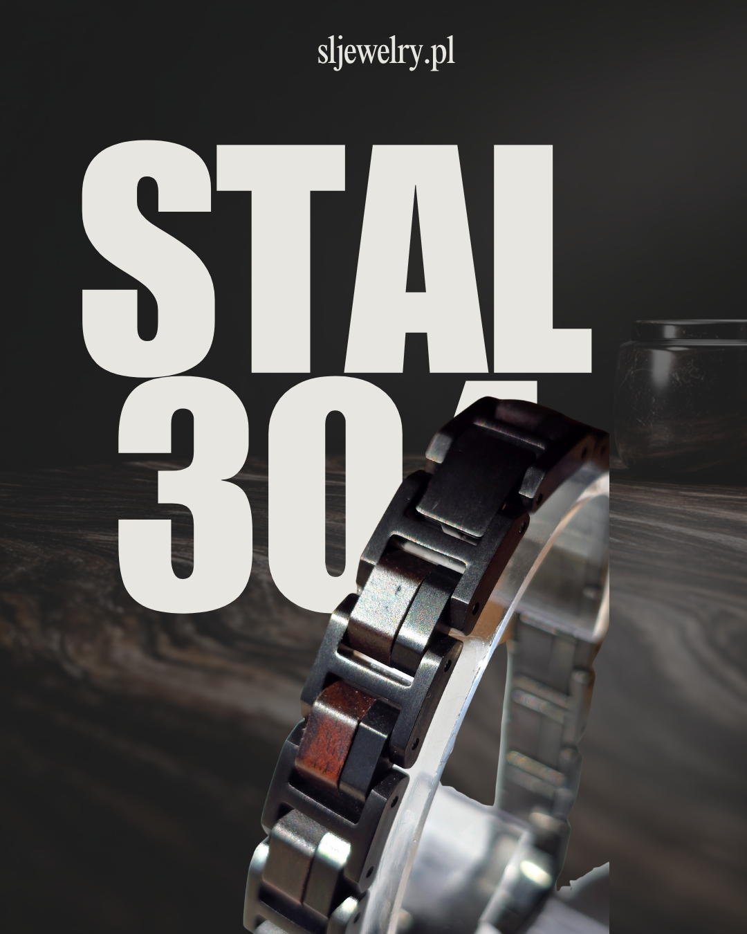 Bransoletka wykonana jest z stali nierdzewnej 304 — solidnego i niezawodnego stopu, który nie wygina się, nie pęka i nie odkształca się z czasem.